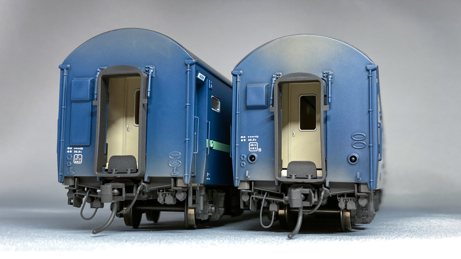 ●(オロネ10・オロネフ10・オハネフ12)実車の記録を参考に調色した青色で塗装。