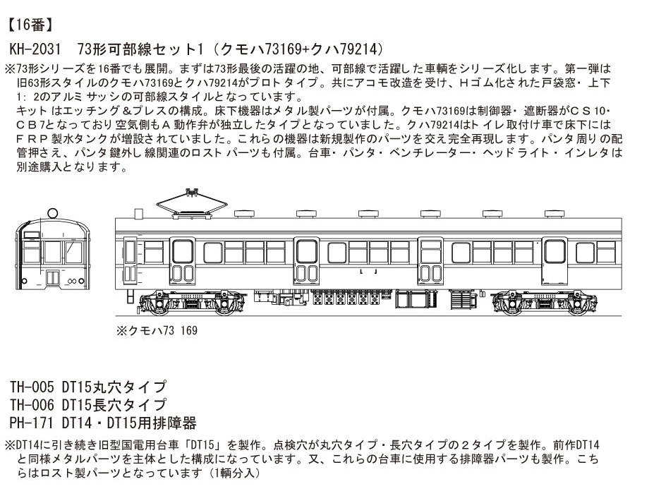 | BONA FIDE PRODUCT | 再生産 73系可部線セット1(クモハ73169+クハ79124) キット (詳細はこちら) | ¥47,000 |