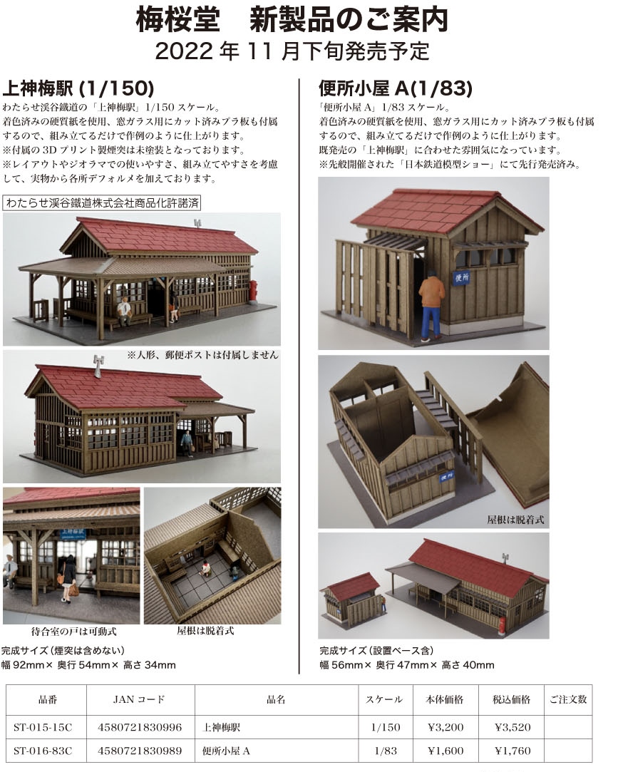 | 梅桜堂 | 上神梅駅 1/80 ペーパーキット (詳細はこちら) | ¥6,500 |
