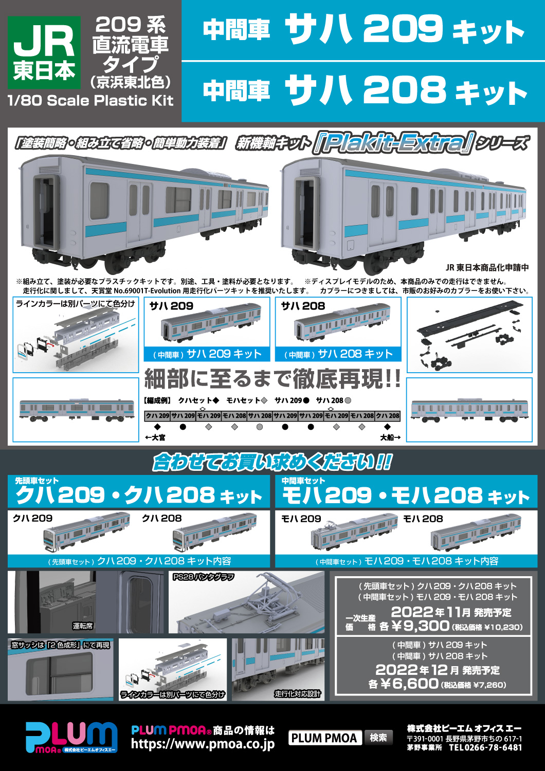 | 〃 | JR東日本209系直流電車タイプ(京浜東北色) サハ208 キット | ¥6,600 |