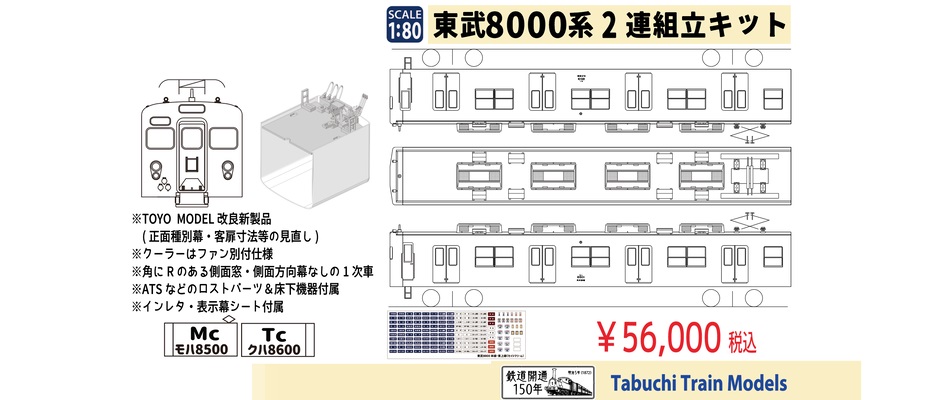 | Tabuchi Train Models | 東武8000系 初期車2連 キット | ¥50,909 |