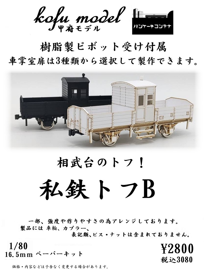 | 甲府モデル | 1/80 ワ22000 (前期型) ペーパーキット (詳細はこちら) | ¥2,800 |