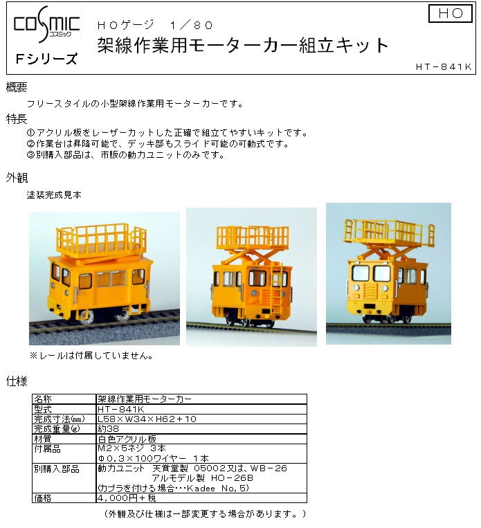 | コスミック | HT-841K 架線作業用モーターカー | ¥4,000 |