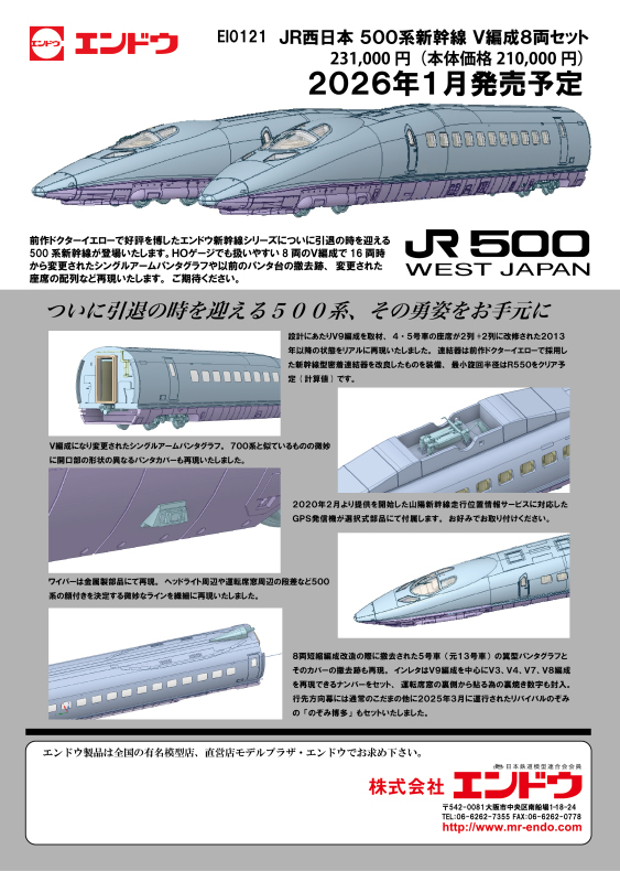 | EI0121 | JR西日本 500系新幹線 V編成 8両セット | ¥210,000 | 2026年1月 |