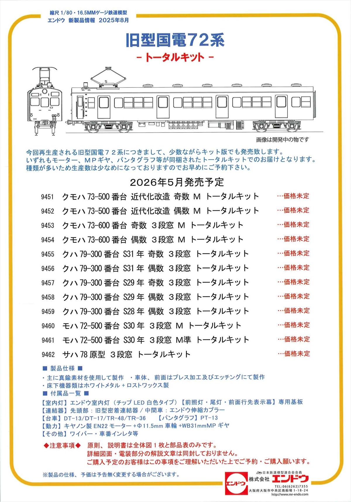 | KH-2075 | クモハ73500番代(奇数・郡山工)/近代化改造車(幡生工) | ¥21,000 | 2025年 6月下旬 |
