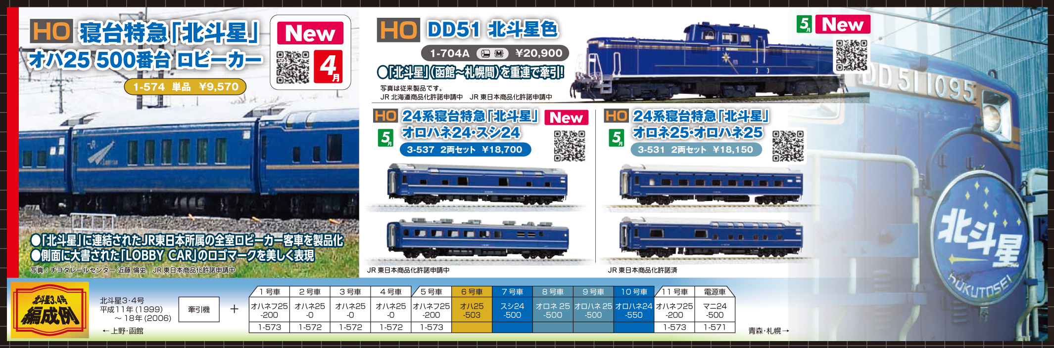 | 1-574 | (HO)寝台特急「北斗星」オハ25 500 ロビーカー | ¥6,960 | 2026年4月 |