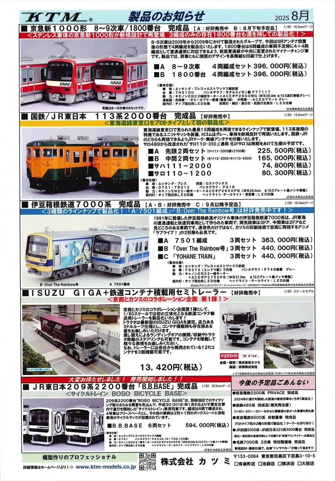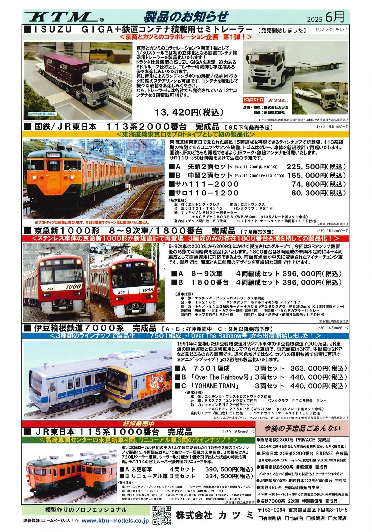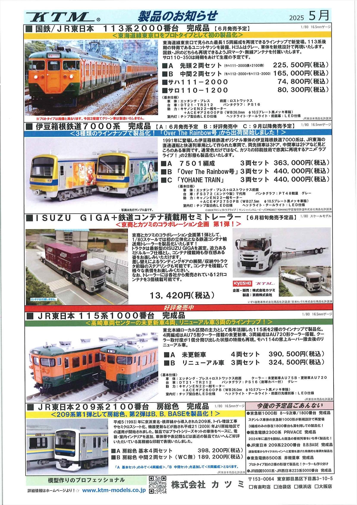 カツミ製品のお知らせ:2025年5月、2025年6月、2025年7月、2025年8月、2025年10月、2025年11月