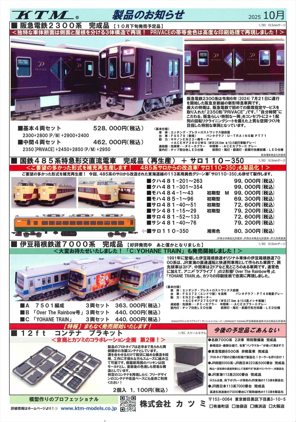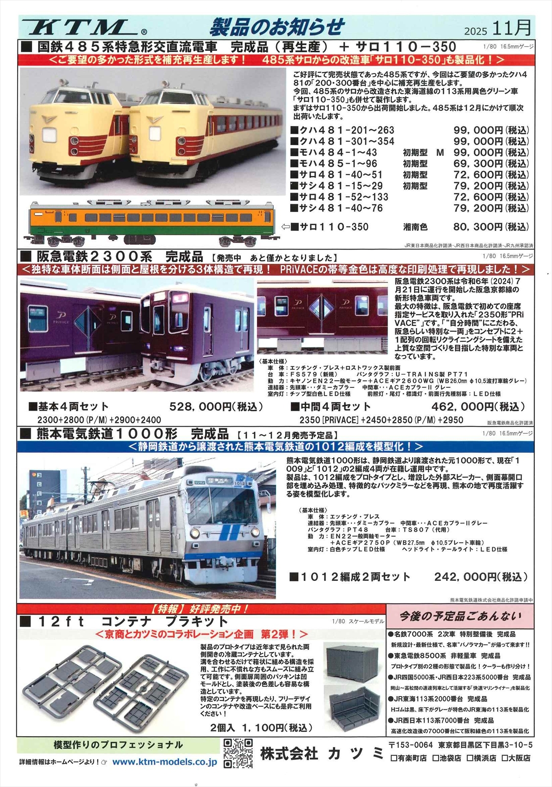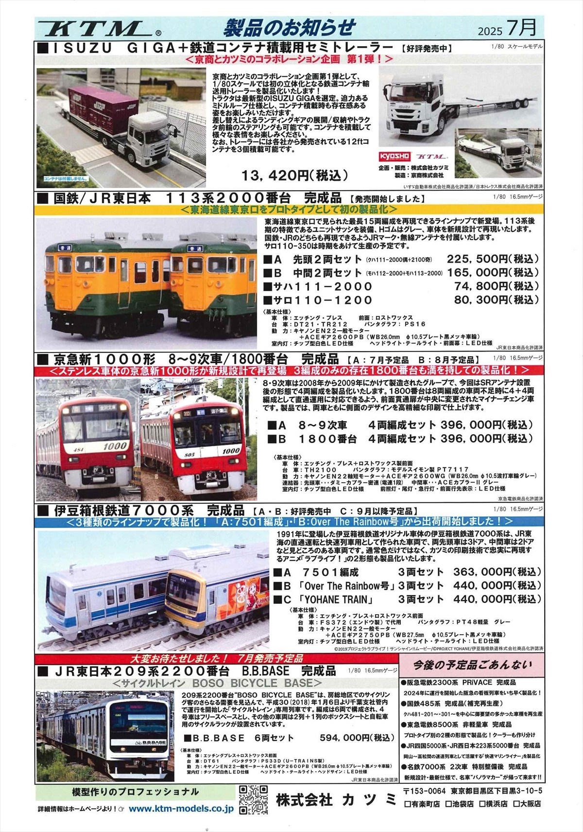 カツミ製品のお知らせ:2025年5月、2025年6月、2025年7月、2025年8月、2025年10月、2025年11月