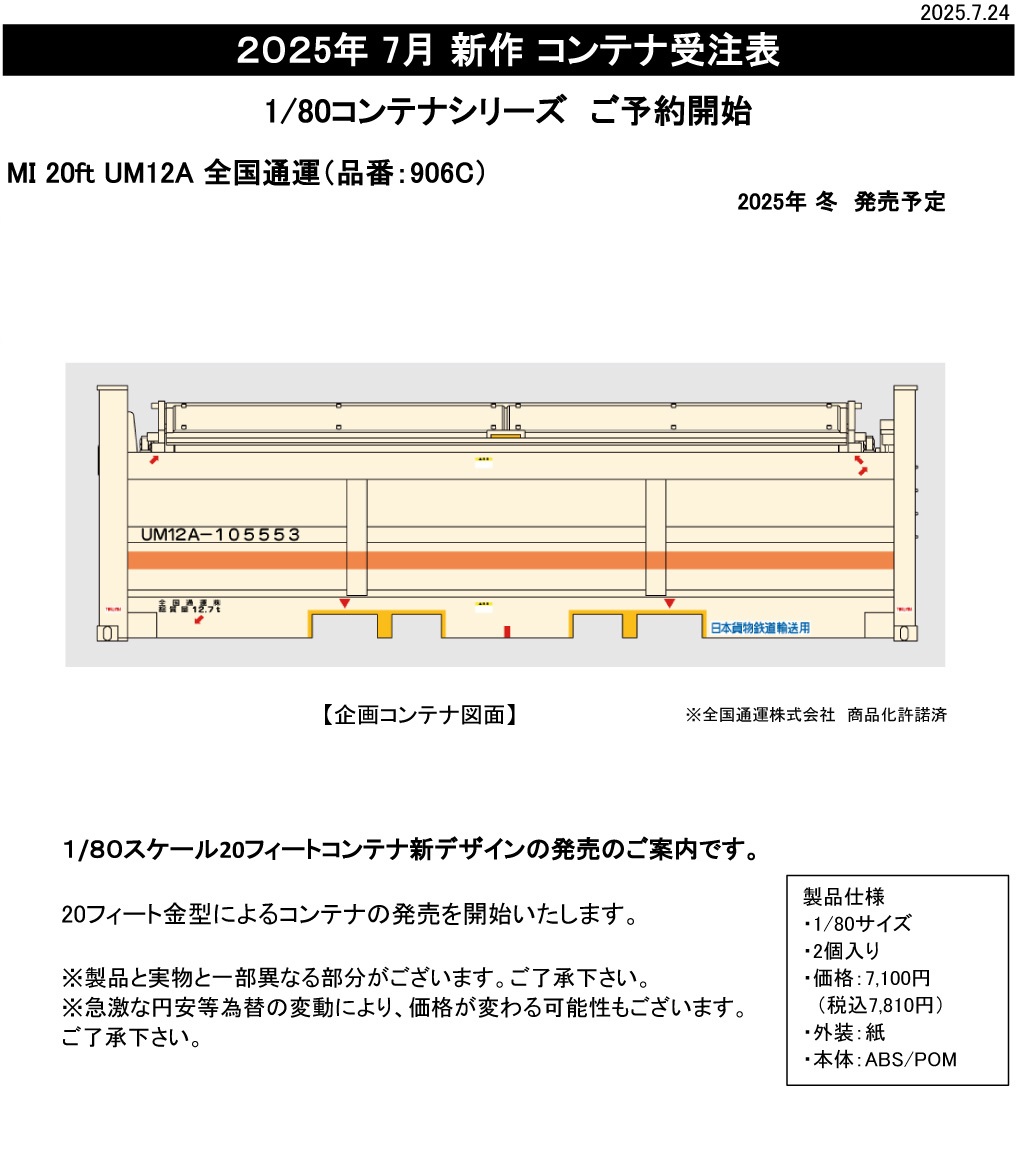 | 916C | MI 20ft UM12A 北海道JR物流 | ¥7,100 | 〃 |