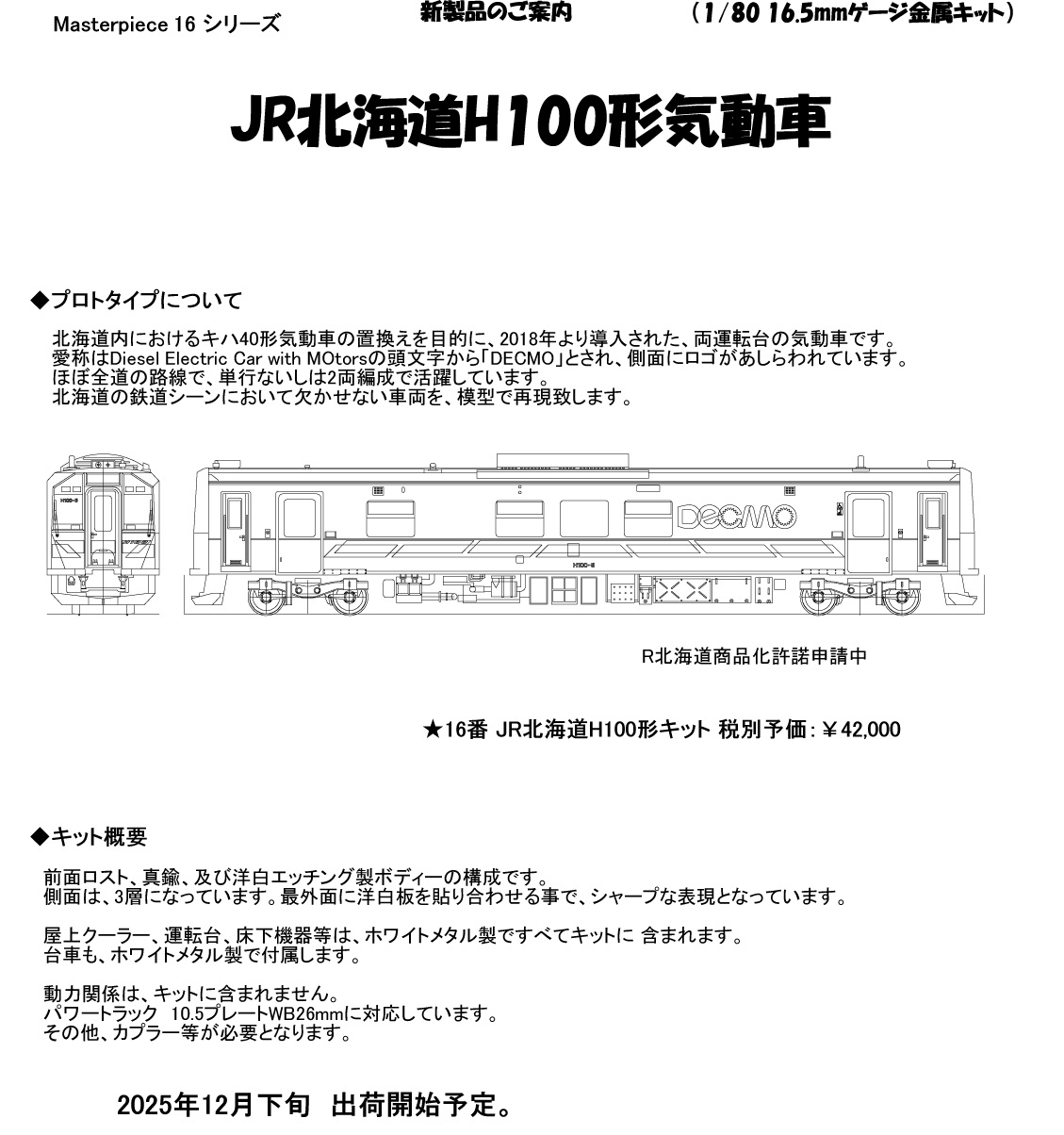 | 16番 JR北海道H100形キット | ¥42,000 | 12月下旬 |