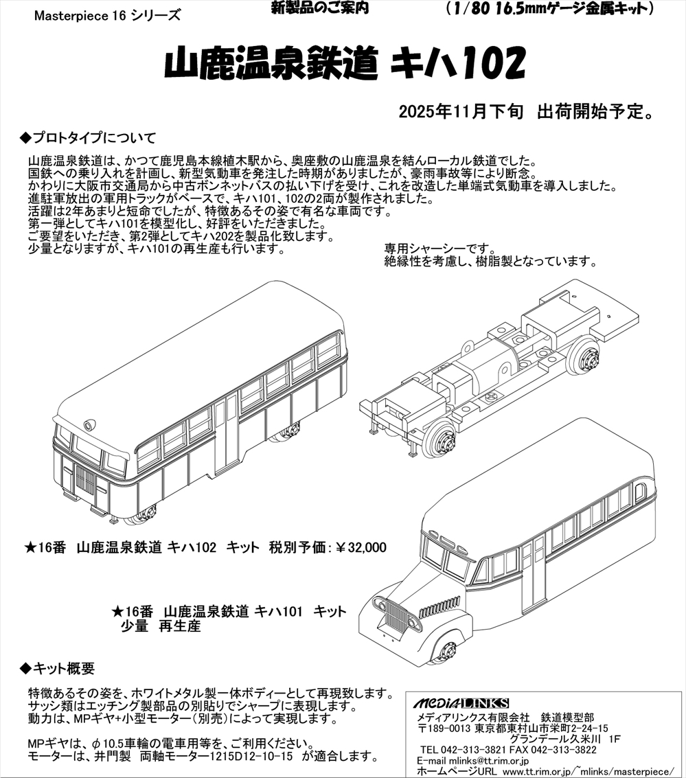 | 16番 山鹿温泉鉄道 キハ102 キット | ¥32,000 | 11月下旬 |