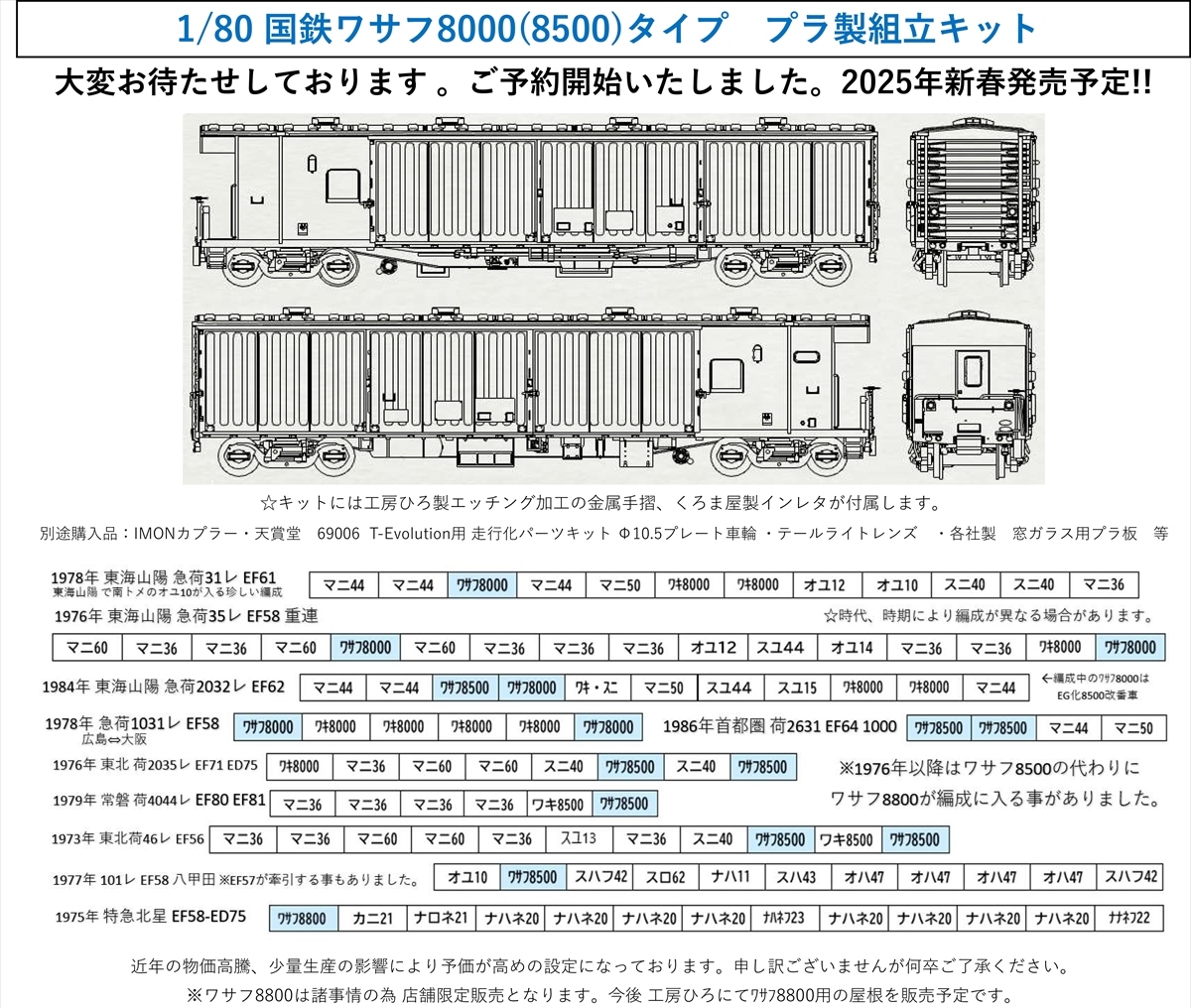 | WS-001 | 国鉄ワサフ8000(8500)タイプ | ¥19,800 | 発売中 |