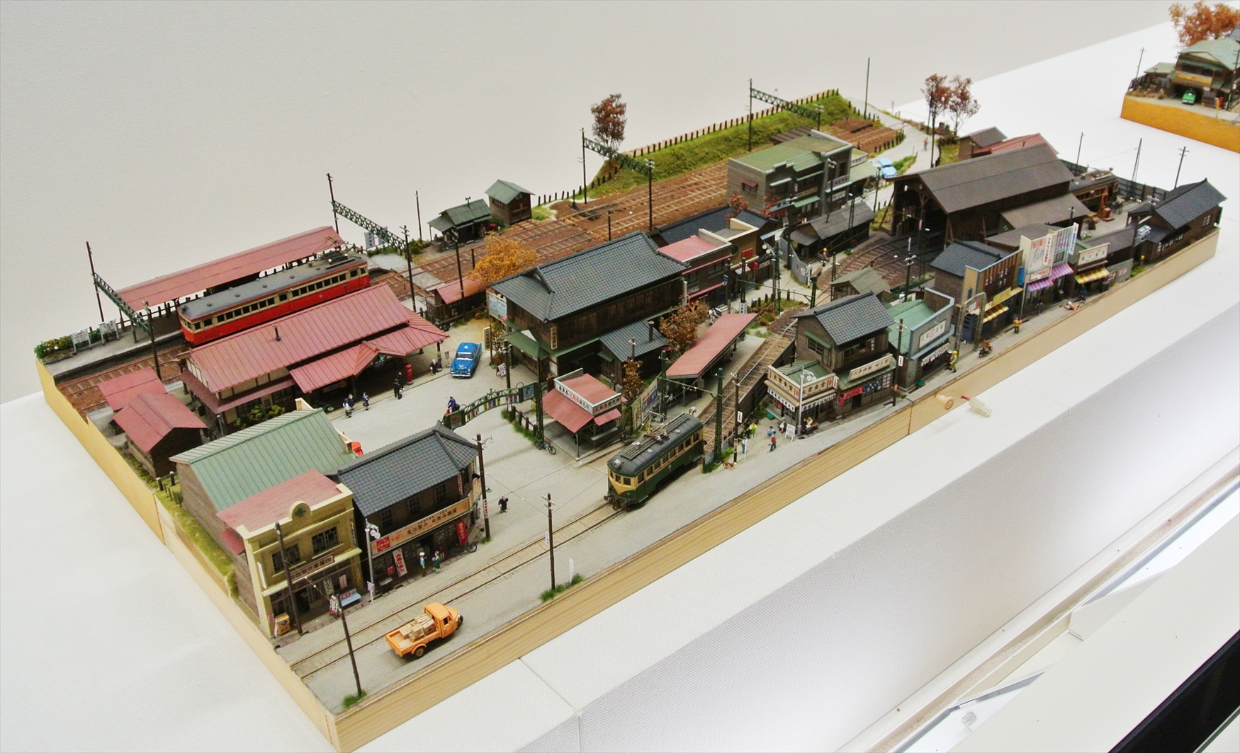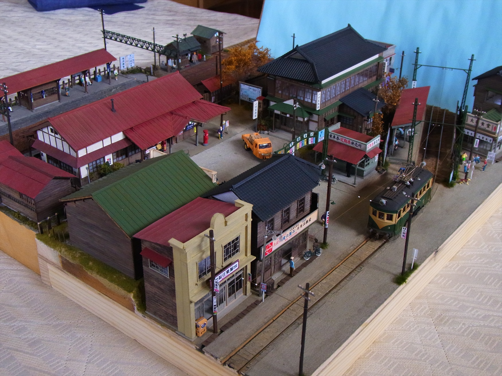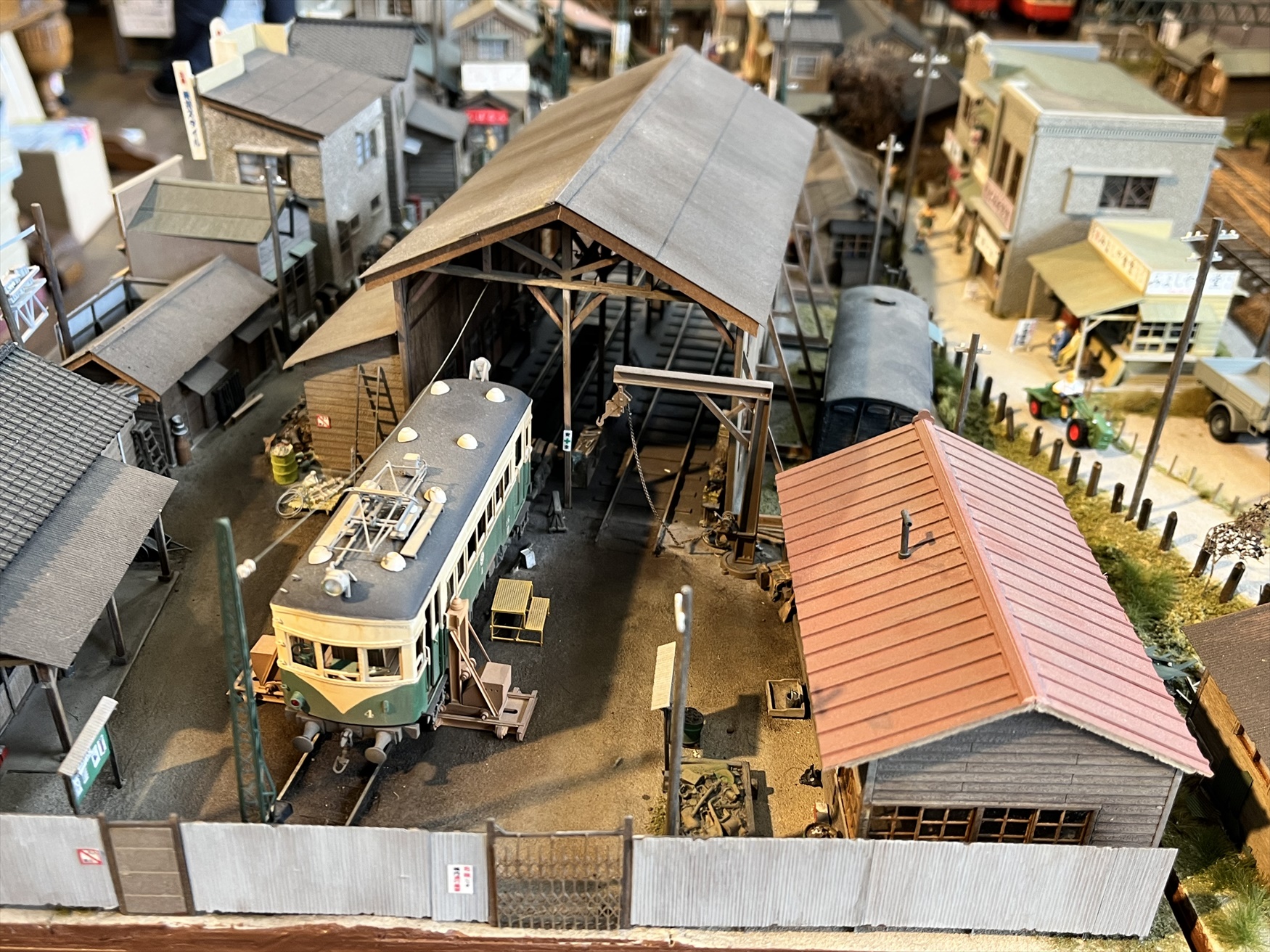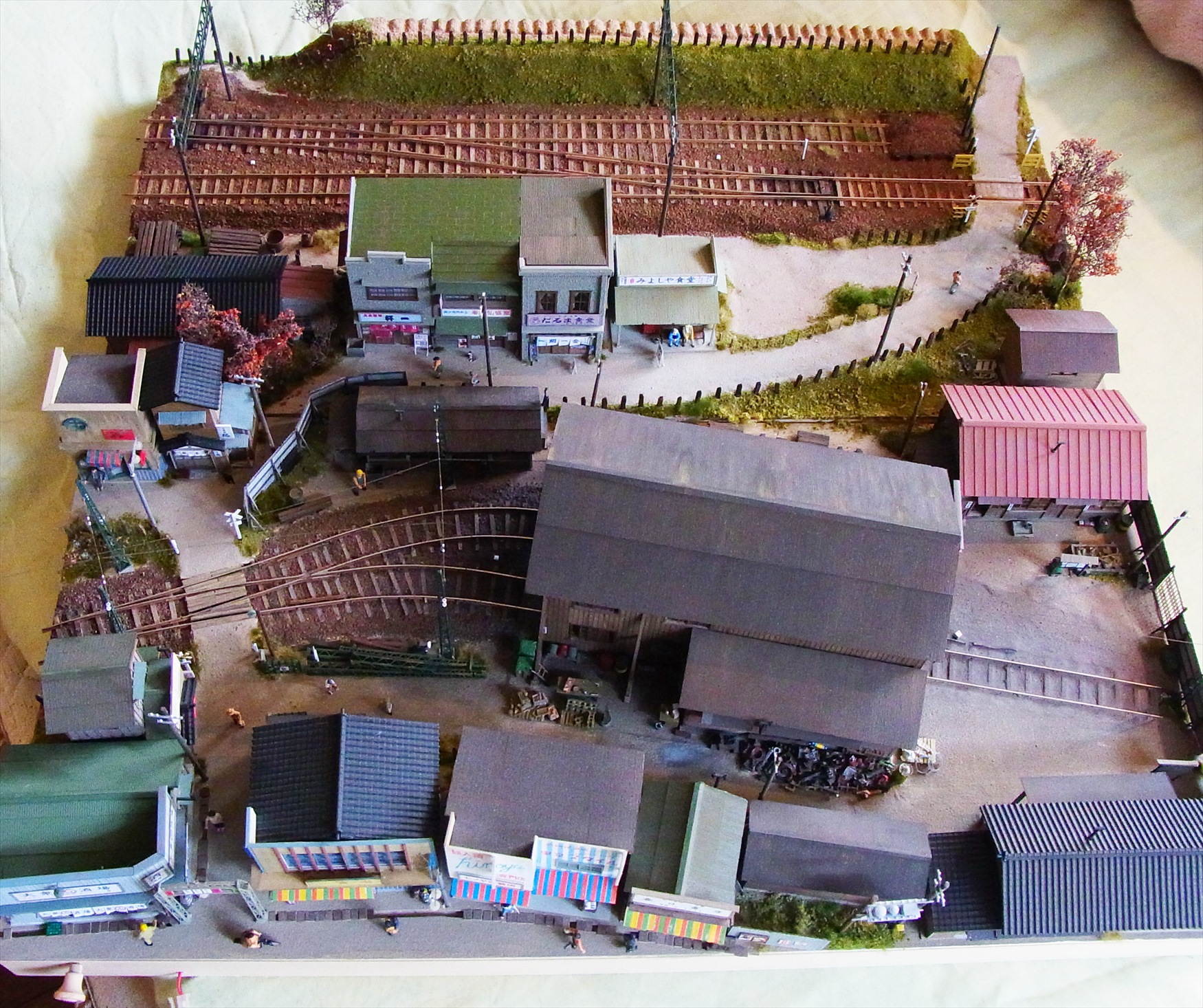 右セクションは軌道線の車庫をメインに、手前側に場末の飲み屋を含めた雑然とした駅前風景を展開させています。車庫はエムズコレクションの製品試作品です。