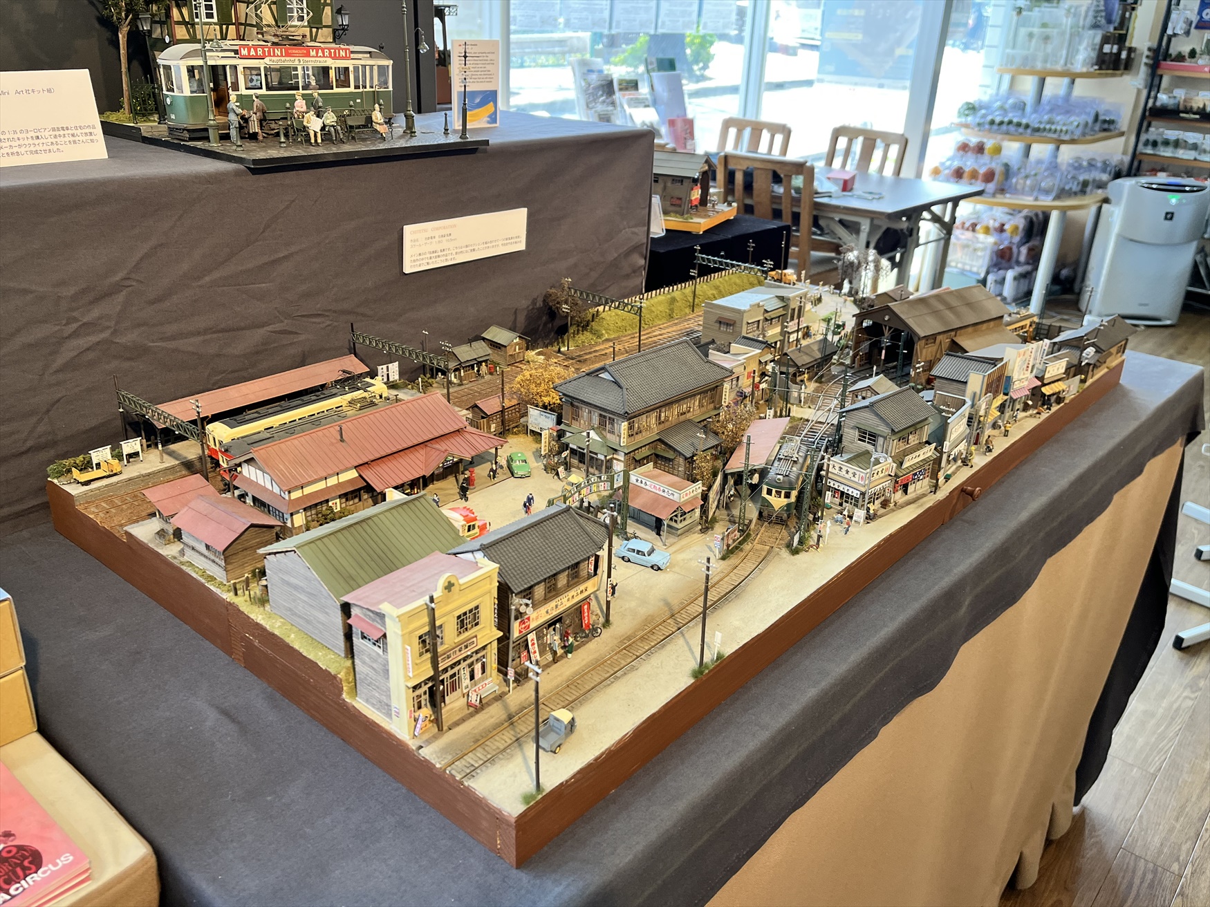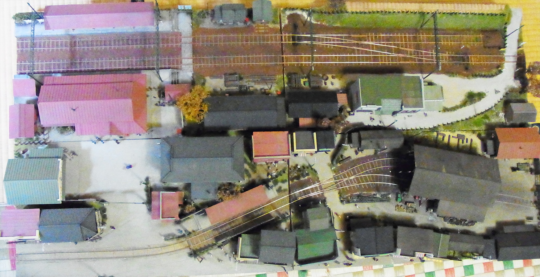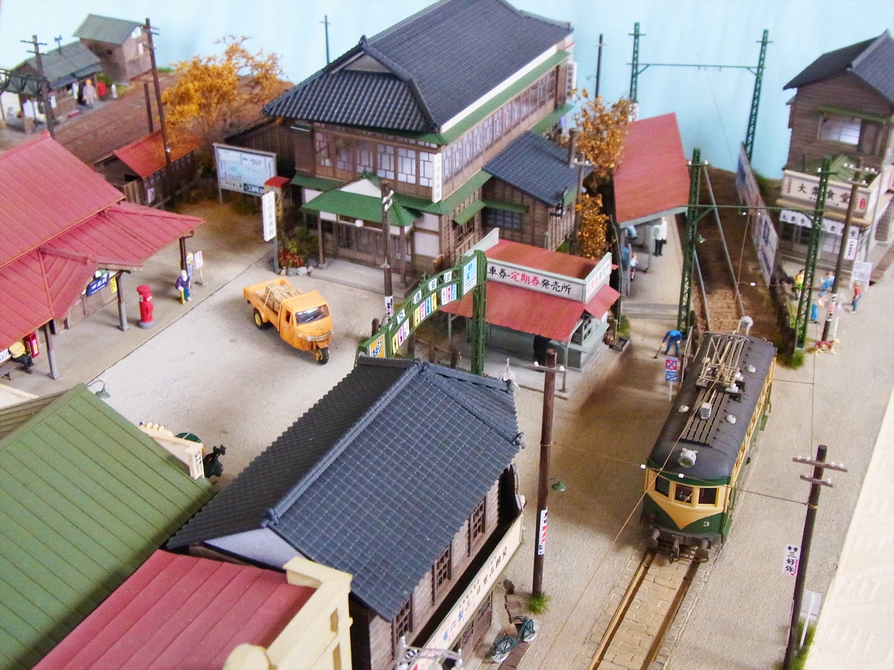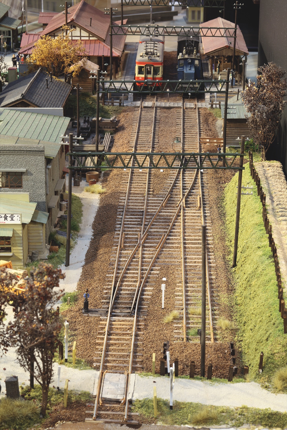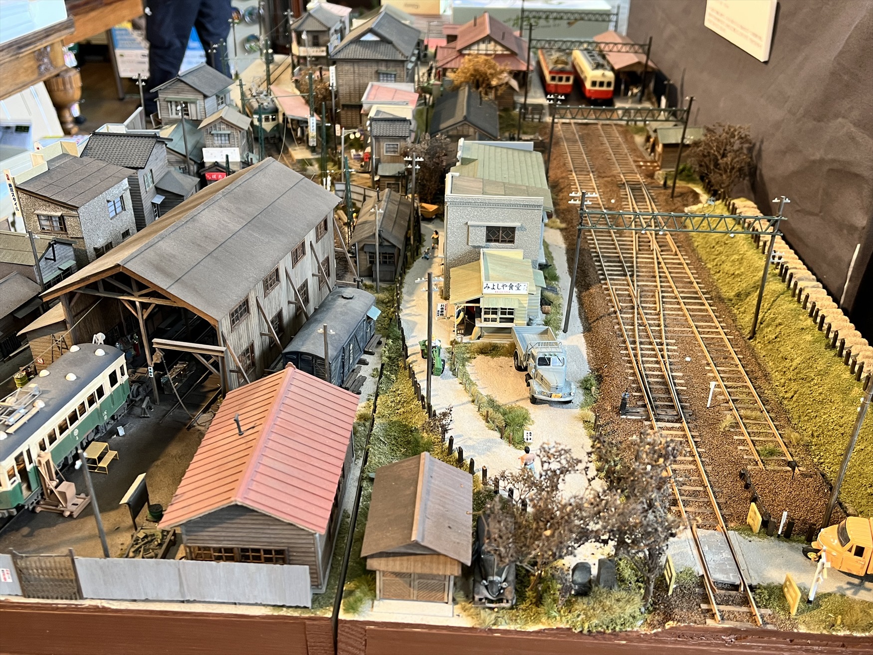 右セクションは軌道線の車庫をメインに、手前側に場末の飲み屋を含めた雑然とした駅前風景を展開させています。車庫はエムズコレクションの製品試作品です。