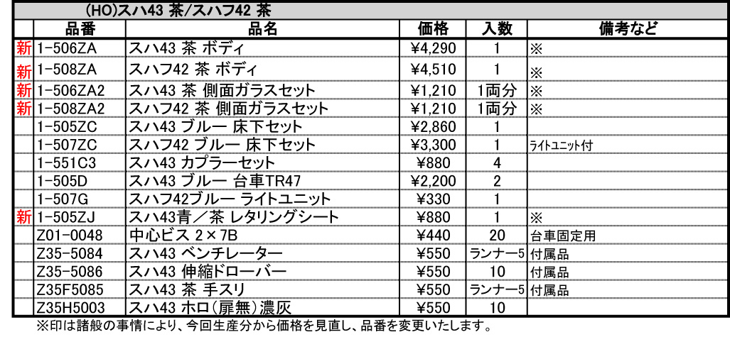 | 〃 | JR キハ35形八高線更新車 (前面補強付エンジン更新車) キット | ¥59,000 |