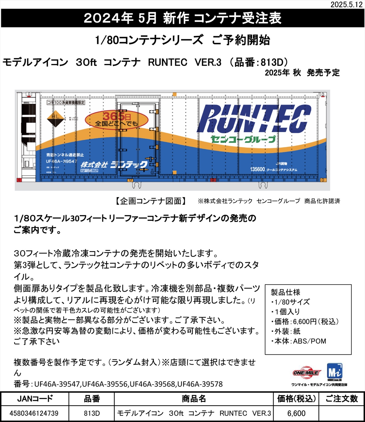 | モデルアイコン | 813D 30ft コンテナ RUNTEC VER.3 | ¥6,000 |