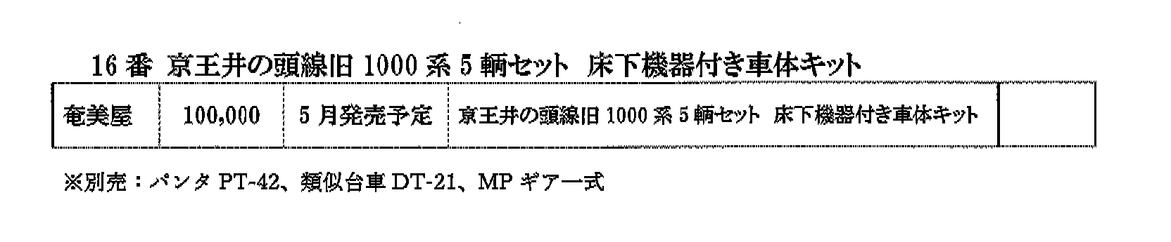 | 〃 | 16番 西鉄9000系 3両編成キット | ¥76,000 |