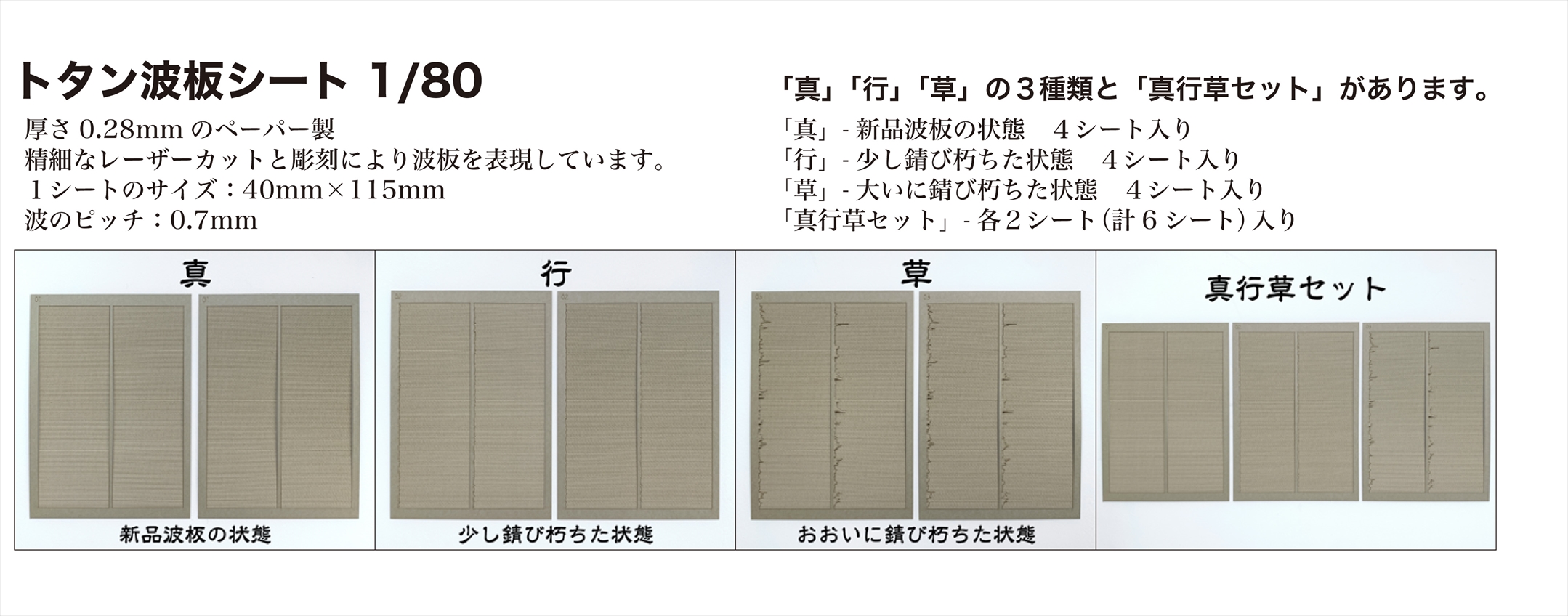 | AC‐015‐80U | 1/80 トタン波板シート「真行草セット」 (詳細はこちら) | ¥1,300 | |