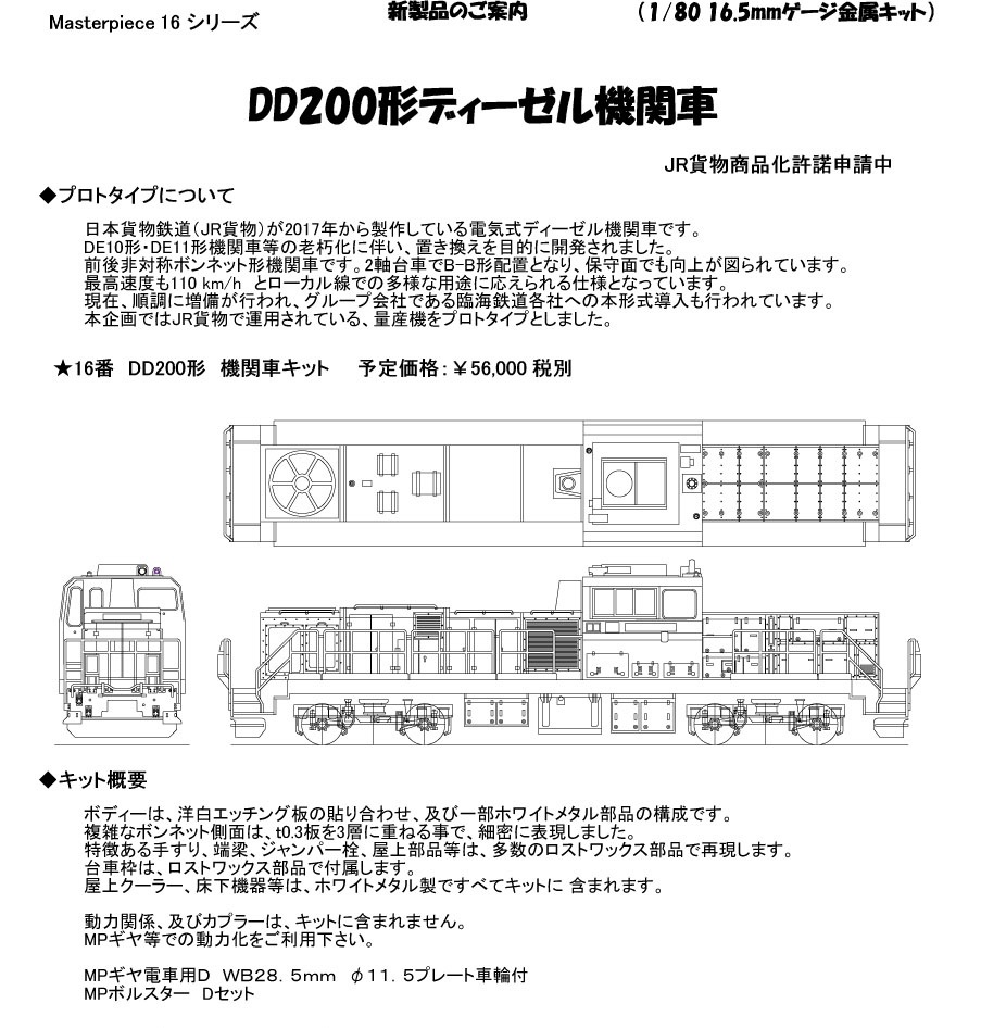 | マスターピース | 再生産 DD200形ディーゼル機関車 キット (詳細はこちら) | ¥56,000 |
