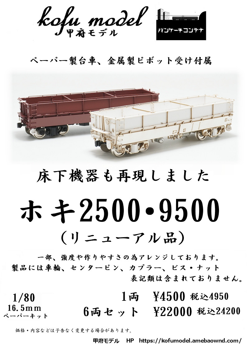 | 甲府モデル | 1/80 ホキ2500・9500(リニューアル品) ペーパーキット | ¥4,500 |