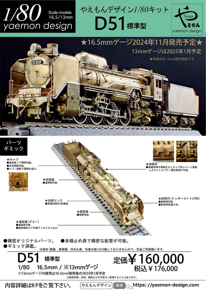 | やえもんデザイン | 1/80 D51標準型キット 16.5mm (詳細はこちら) | ¥160,000 |