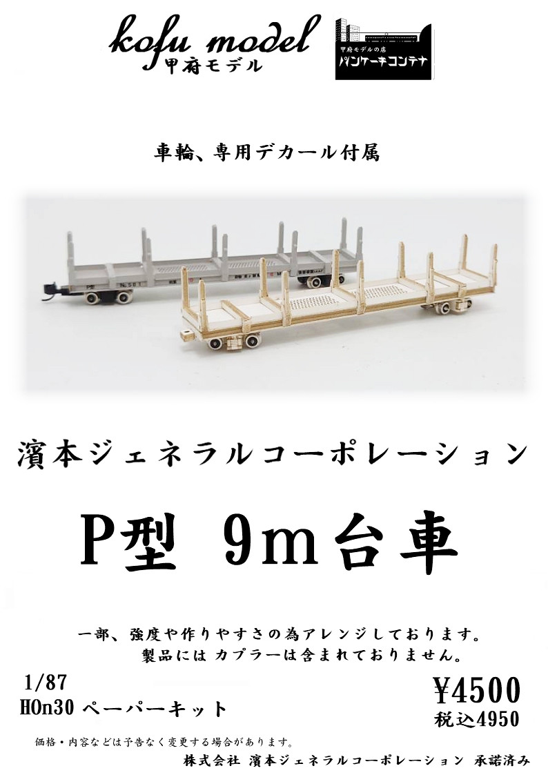 | 〃 | 1/87 HOn 濱本ジェネラルコーポレーション P型9m台車 ペーパーキット | ¥4,500 |