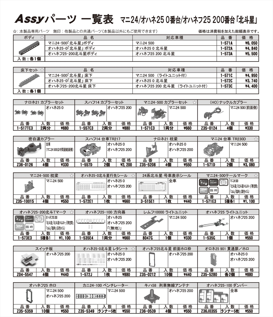 2024.2.9 寝台特急「北斗星」 マニ24他 ASSYパーツ各種 追加しました (一覧はこちら)