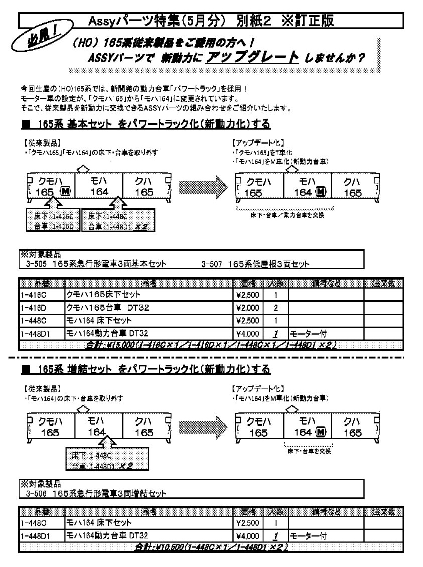2022.10.8 165系 ASSYパーツ各種 追加しました (詳細はこちら) (新動力の詳細はこちら)